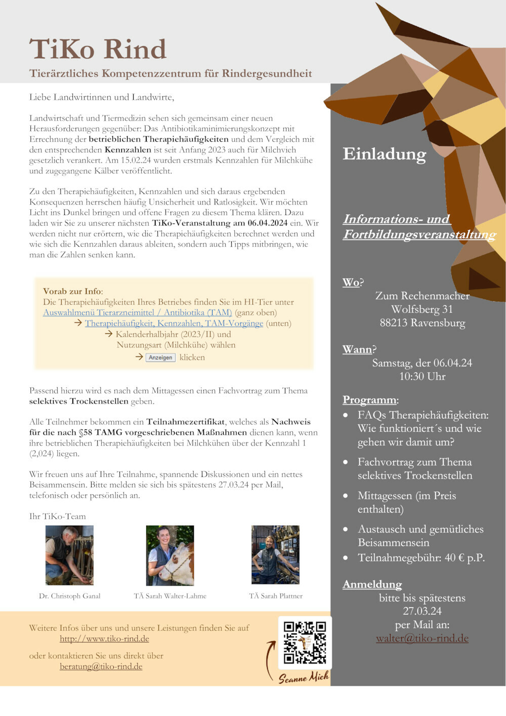 Anmeldung bis spätestens 31.01.25 per Mail an walter@tiko-rind.de oder über das Kontaktformular.
